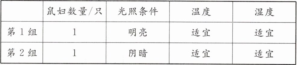 某课外小组探究“光照条件对鼠妇生活的影响”,设计实验方案如下表。