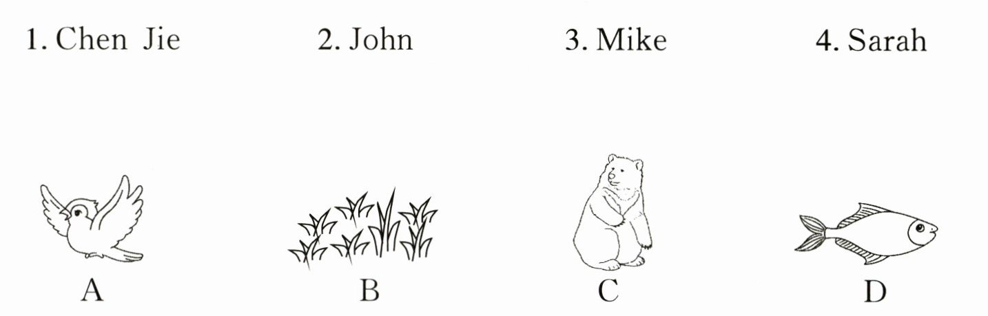Ⅴ. Listen, match and colour. (听录音,连一连,并根据所听内容给图片涂色。)