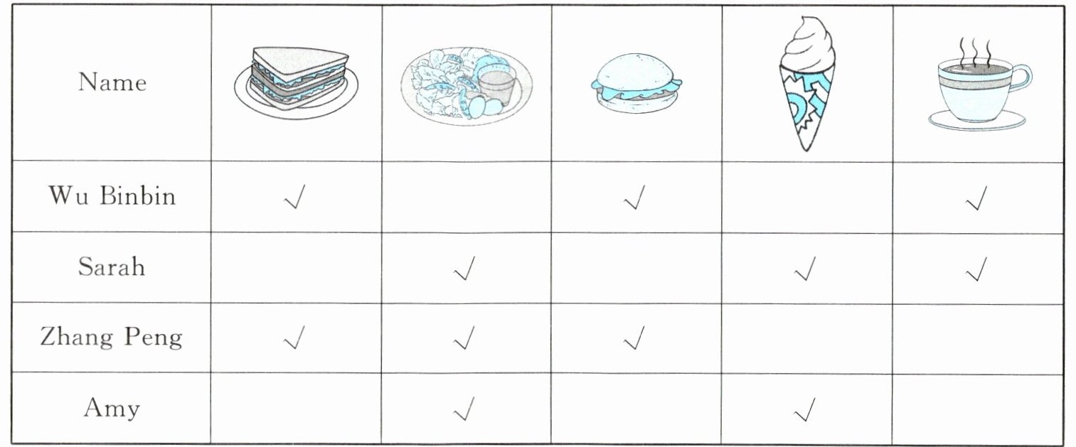 3. Zhang Peng: I'd like a sandwich, some ______ and a ______.