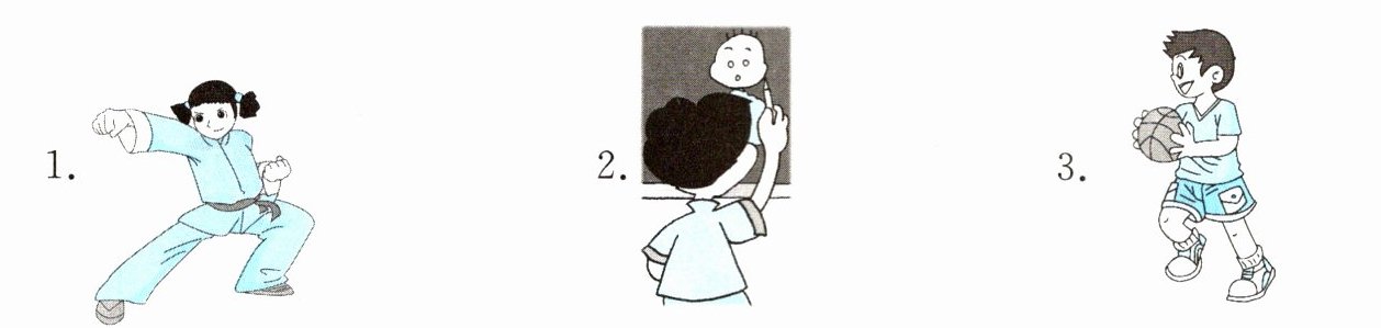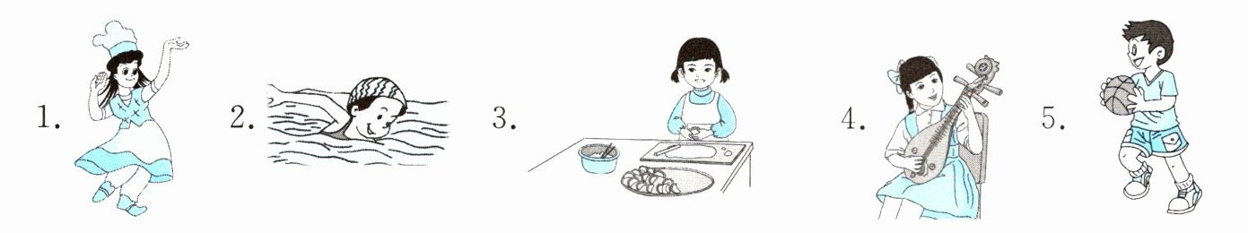 1. do(some) kung fu 2. draw cartoons 3. play basketball 4. play ping-pong 5. play the pipa