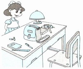 1. There is a girl ______ ______ ______ the desk.