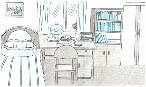 一、听音,画出房间里缺少的物品。