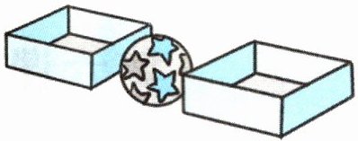 2. There is a ball ______ the two boxes.