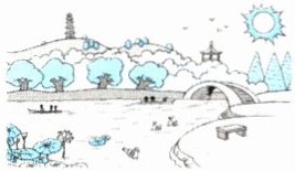 三、根据图片提示补全句子。