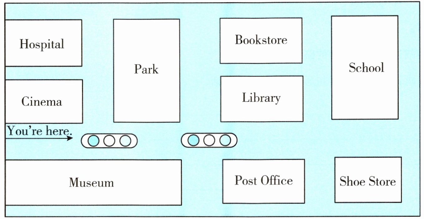 )5. The park is near the ______.A. cinema B. supermarket C. library