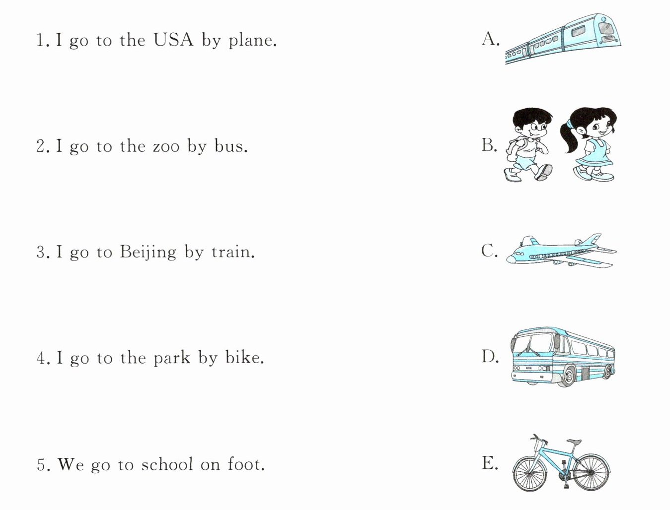 2. I go to the zoo by bus. B.
