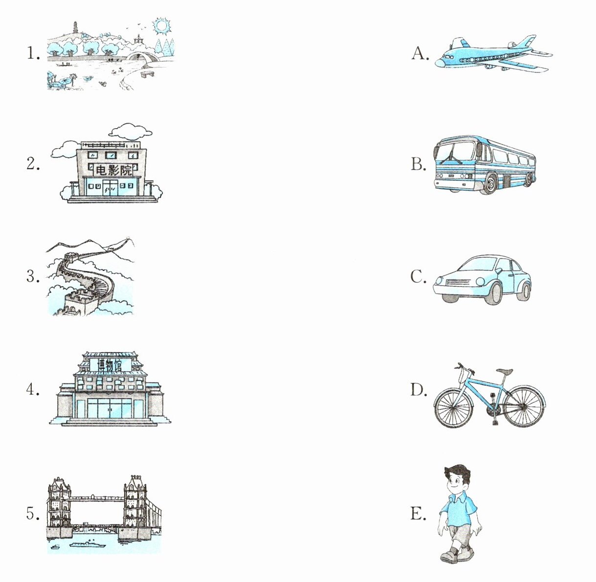 )4. A. on foot B. by bike C. by bus(