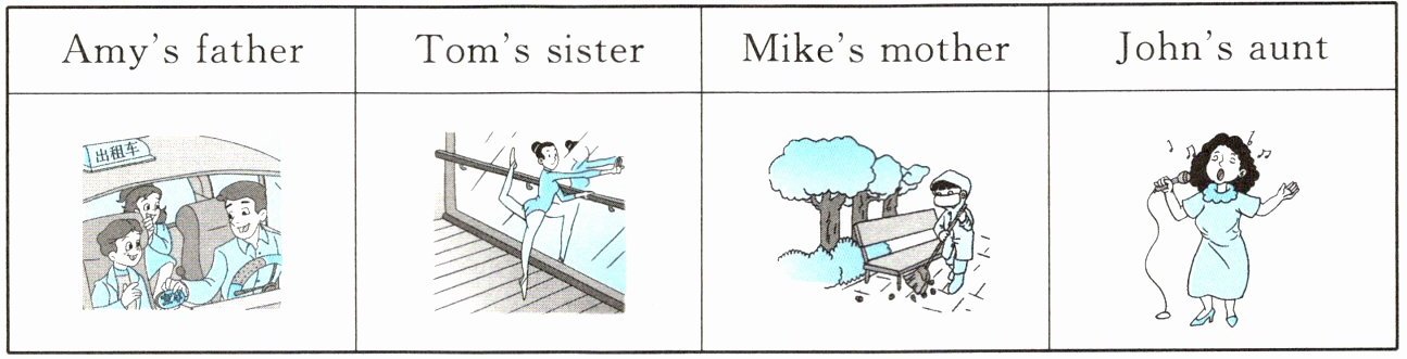 1.taxi driver 2.dancer 3.cleaner 4.My aunt is a singer