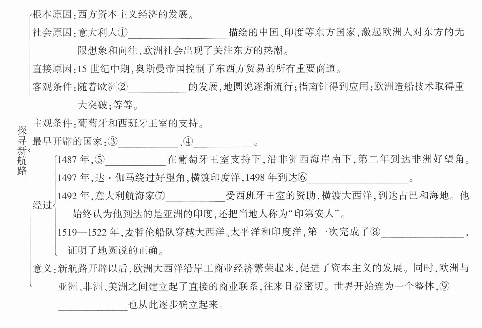 ①马可·波罗 ②地理学 ③葡萄牙 ④西班牙 ⑤迪亚士 ⑥印度西海岸 ⑦哥伦布 ⑧环球航行 ⑨世界的观念