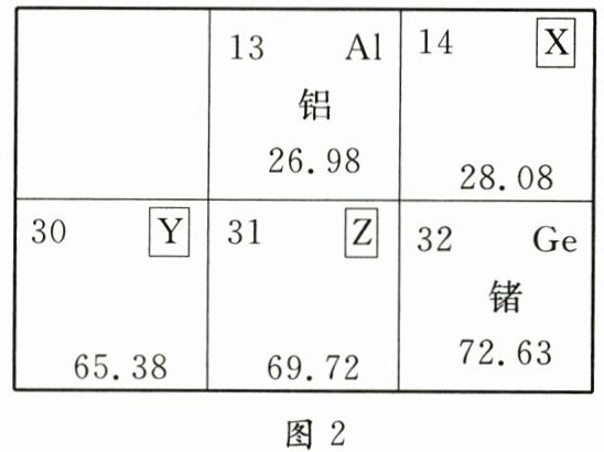 10. 氮化镓是制造芯片的材料之一,图 1 是镓元素(元素符号为 Ga)的原子结构示意图,图 2 是元素周期表的一部分。下列说法不正确的是( )。