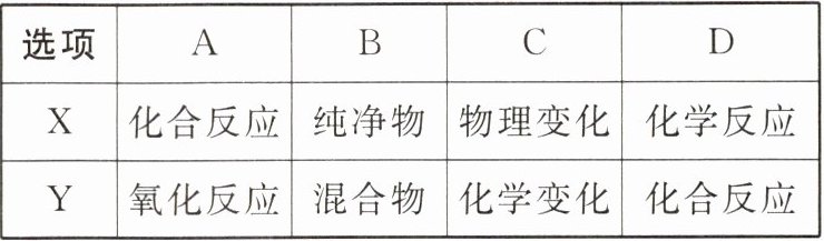 | Y | 氧化反应 | 混合物 | 化学变化 | 化合反应 |