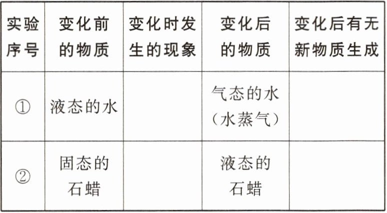 (1)提示 试管口有水蒸气产生,玻璃片上有水珠出现 无 石蜡由固态变为液态 无