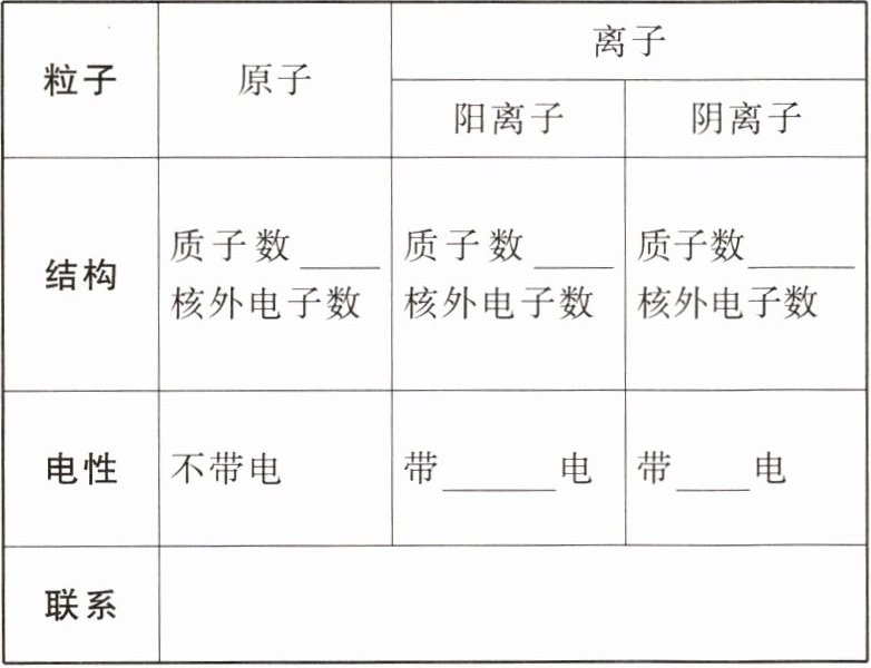 3. 完成原子和离子的区别与联系的表格。