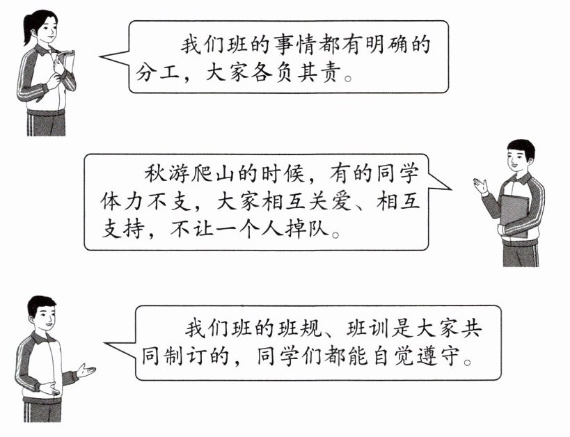 (2)议一议:假如你参与了你所在班级的班规、班训的制定,你会遵守吗?为什么?