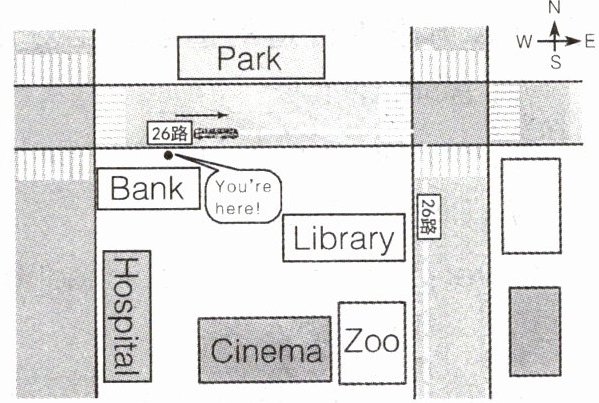 1.there is 2.cinema 3.there isn't 4.straight,turn right