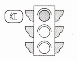 )4.Look at the traffic lights. It's red. You must now.A.stop