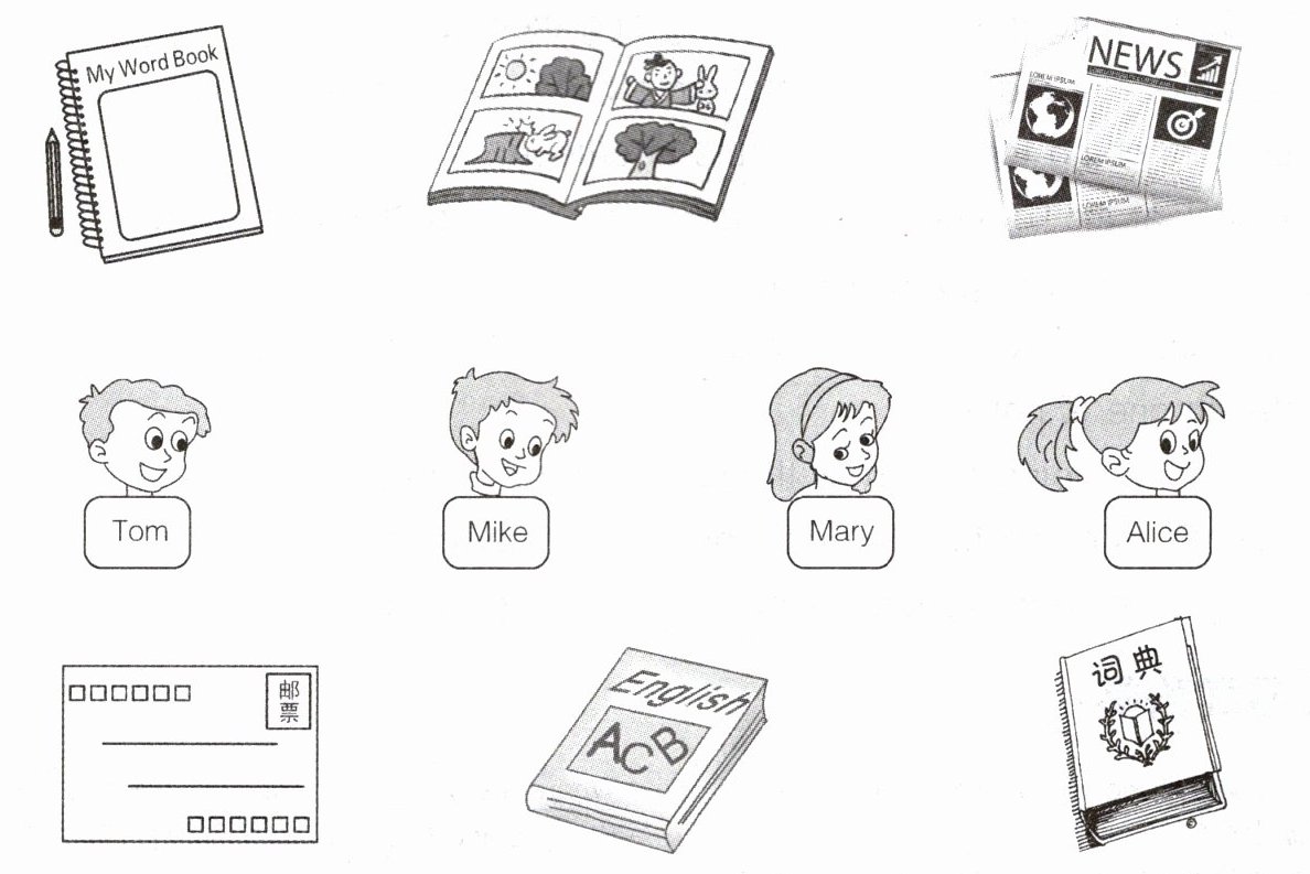 二、听录音,根据你听到的内容给人物标序号并将相关图片连线。(10分)