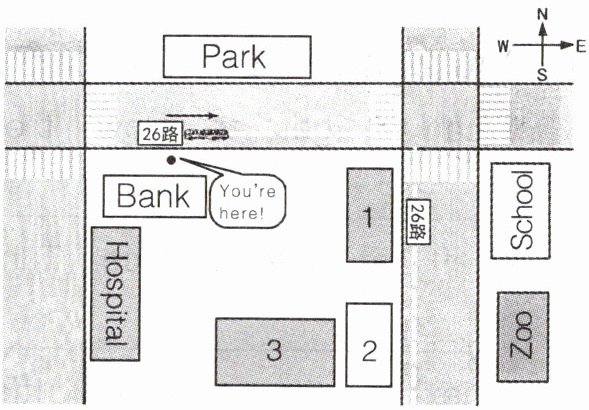 Ⅳ. 阅读对话,根据对话内容写出图中标示的三个地方。