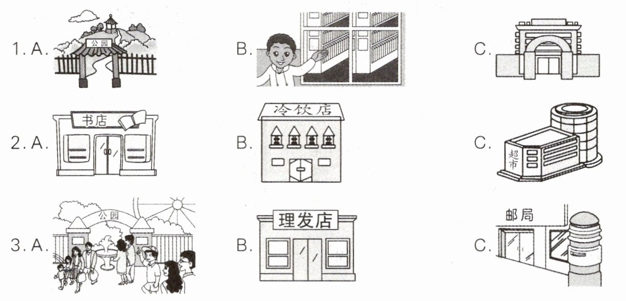 Ⅱ.1.bookstore 2.hospital 3.right 4.ten