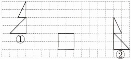 图②中的三角形部分先向上平移 1 格,再向左平移 19(或 14)格(答案取决于将该三角形与图中哪个空白三角形拼合,若与左侧三角形拼合则向左平移 19 格,若与右侧三角形拼合则向左平移 14 格);