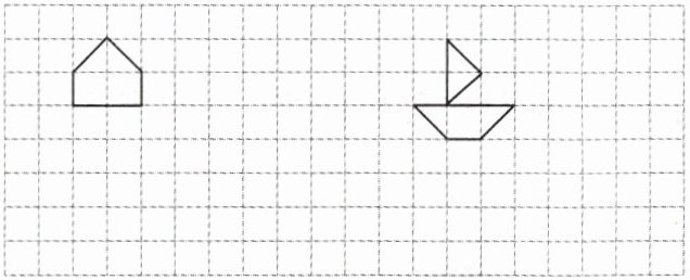 (1) 将房子的各个顶点向下平移4格,依次连接各顶点,得到向下平移4格后的房子图形。