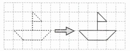 (2) 先将小船的各个顶点向左平移5格,得到中间状态图形;再将中间状态图形的各个顶点向下平移3格,依次连接各顶点,得到最终平移后的小船图形。