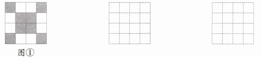 5. 图①是由8个涂色的小正方形构成的轴对称图形。请你分别选8个小正方形涂色,设计出两个不同的轴对称图形。