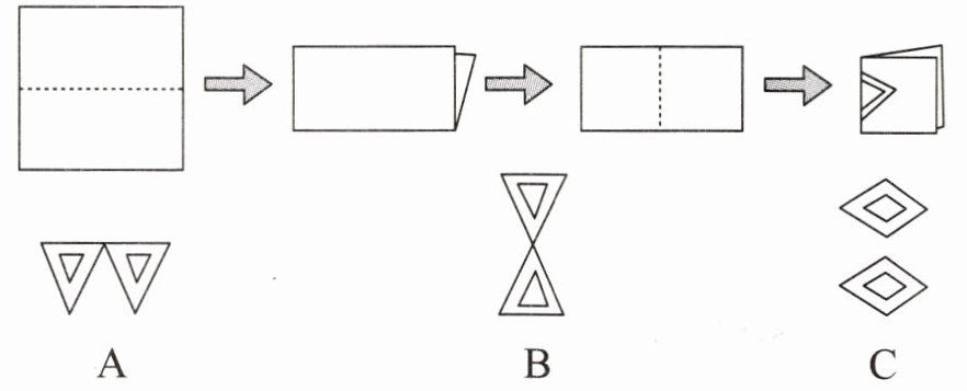 2. 按下面的方法折叠并裁剪,得到的图案是( )。