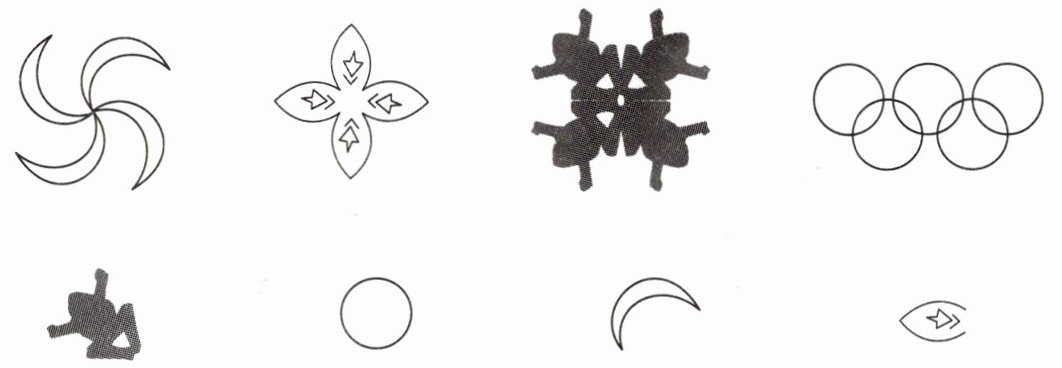 第一个图案连第三个图形,第二个图案连第四个图形,第三个图案连第一个图形,第四个图案连第二个图形。