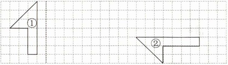 4. 先以虚线为对称轴,画出图形①的轴对称图形,再将图形②向上平移3格。