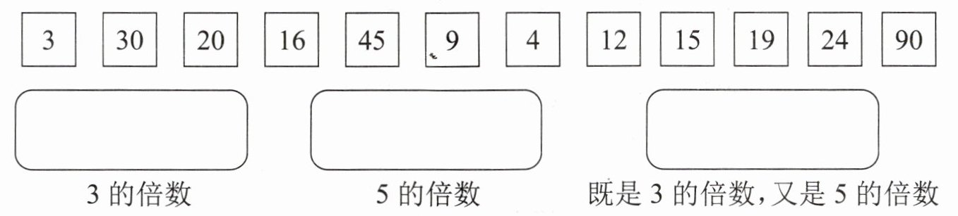 3.3的倍数:3,30,45,9,12,15,24,90 5的倍数:30,20,45,15,90 既是3的倍数,又是5的倍数:30,45,15,90