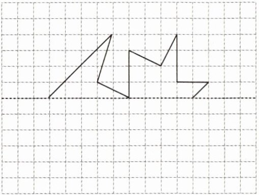 (1)以虚线为对称轴,在方格纸上画出图形的另一半。