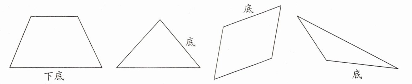 我发现:虽然几个梯形的大小不同,但是从上底到下底的垂直线段是( )(填“一样长”或“不一样长”)的,因此它们的高是( )(填“相等”或“不相等”)的。