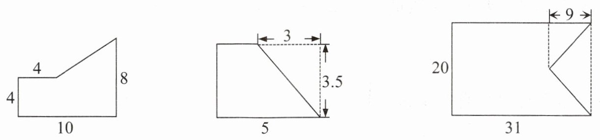 3. 一块铁板的形状如图所示,在这块铁板的一面涂上油漆,涂油漆的面积是多少?(单位:dm)