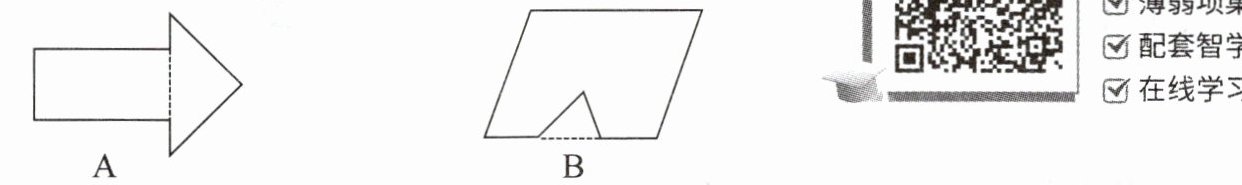(1)A图形可以看成是一个( )和一个( )的组合,组合图形的面积= ( )的面积+( )的面积。