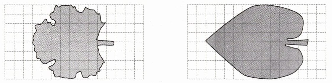 1. 填空,下面分别是两片树叶的平面图。(每个小方格的边长表示1cm,树叶边缘不满整格的按半格计算)