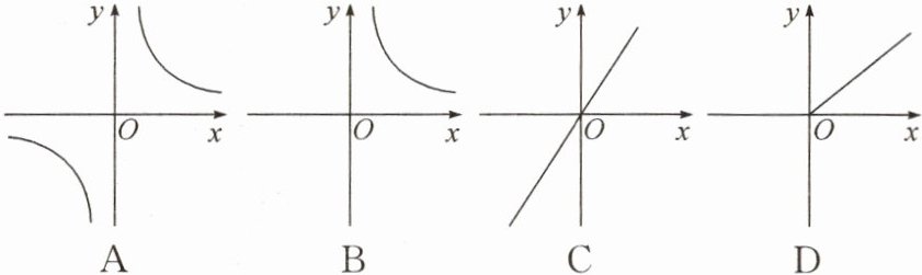 例 1 已知圆柱的体积为 $6\pi cm^{3}$,其底面积为 $y(cm^{2})$,高为 $x(cm)$,则 $y$ 关于 $x$ 的函数的图象大致是(