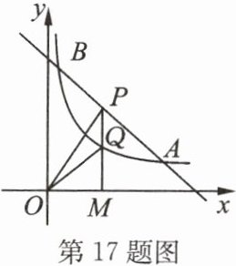 17. 如图,一次函数 $ y_{1} = kx + b(k \neq 0) $ 与反比例函数 $ y_{2} = \frac{m}{x}(x > 0) $ 的图象交于 $ A(4,1) $,$ B(a,8) $ 两点.