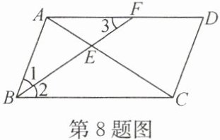 8. 如图,在□ABCD中,∠ABC的平分线BF分别与AC,AD交于点E,F.