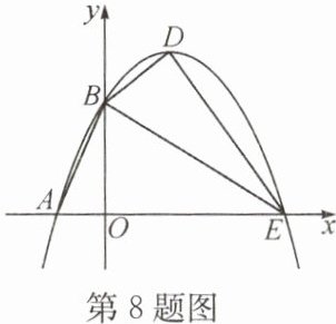 8. 如图,已知抛物线与x轴交于A(-1,0),E(3,0),与y轴交于B(0,3)。