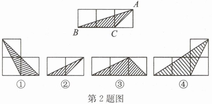 2. 如图,小正方形的边长均为1,则图①②③④中的四个三角形中,与△ABC相似的是