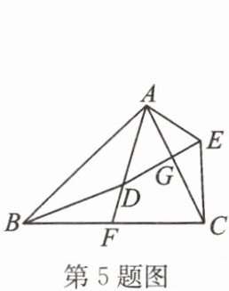 5. 如图,$\frac{AB}{AD}= \frac{BC}{DE}= \frac{AC}{AE}$,则下列结论:①△ABC∽△ADE;②AC平分∠DAE;③∠AFB = ∠AGE;④∠ABF = ∠ADE。其中正确的有(