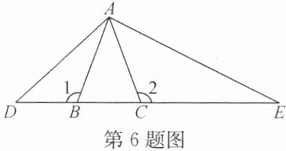 6. 如图,等腰三角形$ABC$中,$AB = AC$,$D为CB$延长线上一点,$E是BC$延长线上一点,且$AB^{2} = DB \cdot CE$.