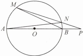 2. 如图,P是⊙O的直径AB延长线上一点,M为$\overset{\frown}{AB}$上的一个动点(不与A,B重合),PM与⊙O交于点N(不与M重合)。求证:$\frac{PA}{PM}= \frac{PN}{PB}$。