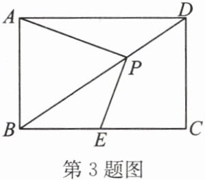 3. 如图,将一个直角的顶点 $ P $ 放在矩形 $ ABCD $ 的对角线 $ BD $ 上滑动,并使其一条直角边始终经过点 $ A $,另一条直角边与边 $ BC $ 相交于点 $ E $,且 $ AD = 8 $,$ DC = 6 $,则 $ \frac{AP}{PE} = $