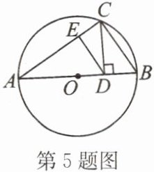 5. 如图,$ AB $ 是 $ \odot O $ 的直径,点 $ C $ 在 $ \odot O $ 上,$ CD \perp AB $,$ DE // BC $,则图中与 $ \triangle ABC $ 相似的三角形的个数为(