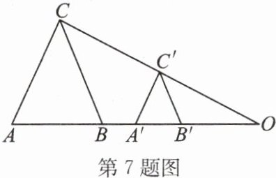 7. 如图,△ABC 与△A'B'C'是位似图形,点 O 是位似中心,点 A,B,A',B',O 共线.