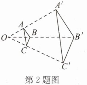 2. 如图,△ABC 和△A'B'C'是以点 O 为位似中心的位似图形,点 A 在线段 OA'上. 若 OA:AA'= 1:2,则△ABC 与△A'B'C'的周长之比为