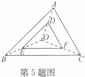 5. 如图,△DEF 是由△ABC 经过位似变换得到的,点 O 是位似中心,D,E,F 分别是 OA,OB,OC 的中点,则△DEF 与△ABC 的面积之比是(