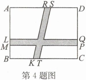 4. 如图,在一块长为 22 m、宽为 17 m 的矩形地面上,要修建一条长方形道路 $LMPQ$ 及一条平行四边形道路 $RSTK$,剩余部分种上草坪,使草坪面积为 300 m^2。若 $LM = RS = x$ m,则 $x = $